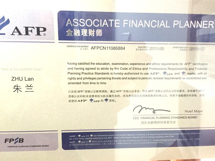 核心團隊成(chéng)員,高級理财經理,金融理财師(AFP)