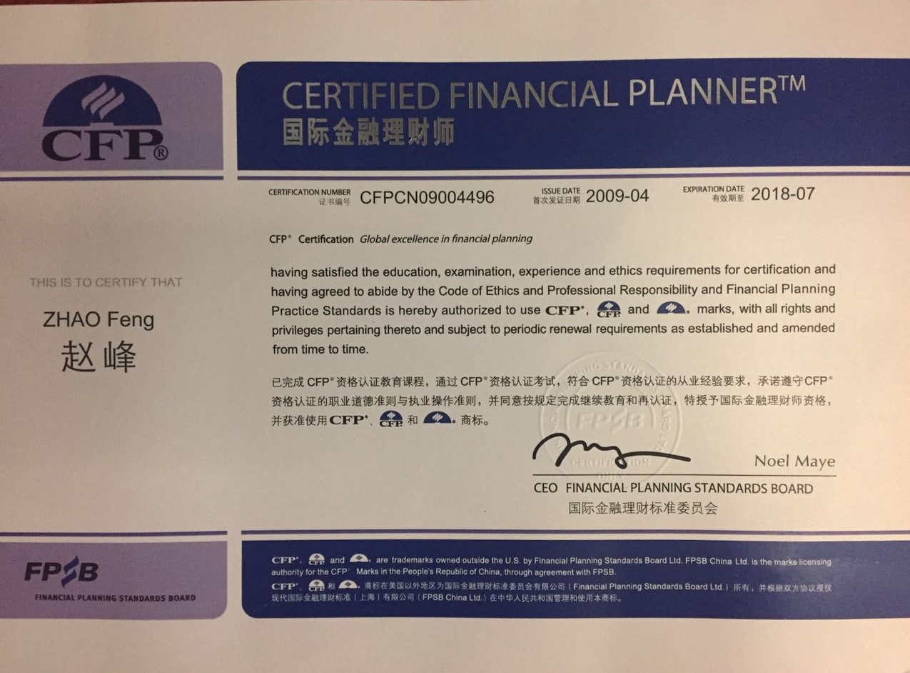 核心團隊成(chéng)員,财富管理部總經理,國際金融理财師(CFP)